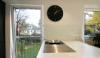 – Großzügige Arbeitsflächen aus Marmor/Feinstein mit verglaster Milchglasrückwand